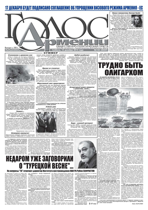 Общественно-политическое издание "Голос Армении" выходит с мая 1991 года и является наиболее популярной, авторитетной и цитируемой русскоязычной газетой страны. Спектр затрагиваемых проблем - самый широкий: от политики и экономики до культуры и социальных сетей, а авторы "Голоса Армении" по праву составляют золотой фонд современной армянской журналистики.