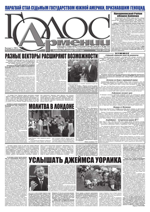 Общественно-политическое издание "Голос Армении" выходит с мая 1991 года и является наиболее популярной, авторитетной и цитируемой русскоязычной газетой страны. Спектр затрагиваемых проблем - самый широкий: от политики и экономики до культуры и социальных сетей, а авторы "Голоса Армении" по праву составляют золотой фонд современной армянской журналистики.