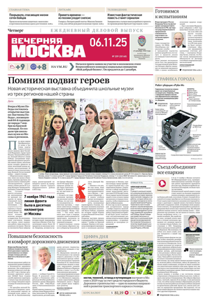 «Вечерняя Москва» — ежедневная российская вечерняя газета, старейшее из вечерних изданий в России, учрежденное в 1923 году. Выходит пять дней в неделю, кроме субботы и воскресенья. Отличается тем, что рассказывает о событиях еще не завершившегося дня. Оперативно освещает хронику и особенности жизни Москвы, охватывает все слои общества и большинство профессиональных и возрастных групп читателей.Издание представлено тремя выпусками – утренним ежедневным, вечерним (выходит три раза в неделю), еженедельным (выходит по четвергам).