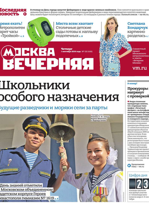 «Вечерняя Москва» — ежедневная российская вечерняя газета, старейшее из вечерних изданий в России, учрежденное в 1923 году. Выходит пять дней в неделю, кроме субботы и воскресенья. Отличается тем, что рассказывает о событиях еще не завершившегося дня. Оперативно освещает хронику и особенности жизни Москвы, охватывает все слои общества и большинство профессиональных и возрастных групп читателей.Издание представлено тремя выпусками – утренним ежедневным, вечерним (выходит три раза в неделю), еженедельным (выходит по четвергам).