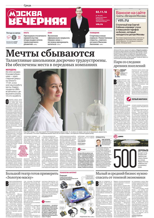 Вечером на страницах «Вечерки» появляются эксклюзивные интервью ньюсмейкеров культуры и шоу-бизнеса, репортажи журналистов по вечерней Москве, афиша нашего города. Один раз в неделю выходит специальный студенческий вечерний номер.