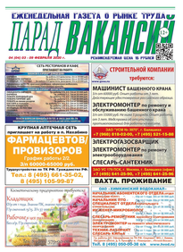 ЕЖЕНЕДЕЛЬНАЯ ГАЗЕТА О РЫНКЕ ТРУДА ПАРАД ВАКАНСИЙ (№ 4 (4))