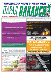 ЕЖЕНЕДЕЛЬНАЯ ГАЗЕТА О РЫНКЕ ТРУДА ПАРАД ВАКАНСИЙ (№ 10 (10))