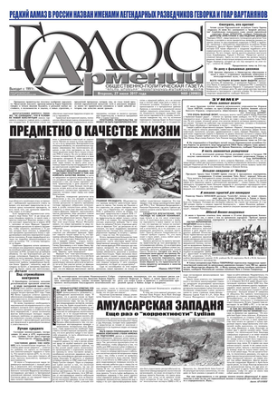 Общественно-политическое издание "Голос Армении" выходит с мая 1991 года и является наиболее популярной, авторитетной и цитируемой русскоязычной газетой страны. Спектр затрагиваемых проблем - самый широкий: от политики и экономики до культуры и социальных сетей, а авторы "Голоса Армении" по праву составляют золотой фонд современной армянской журналистики.