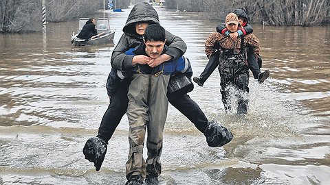 В затопленных районах Орска на удивление активное дорожное движение — только не автомобильное, а лодочное. Это жители «сухих» улиц Орска помогают соседям забрать вещи из домов, путь к которым отрезан паводком. Волонтер Вадим, например, везет пожилую женщину в 6-й микрорайон за фотоальбомом. «Там сына-афганца фотографии,— рассказывает она корреспонденту “Ъ”, пока лодка подплывает к ее многоэтажке.— Он за границей сейчас, расстроится, если затопит воспоминания». Квартира женщины на первом этаже: вода уже дошла до окон, но в комнаты еще не попала. Зайти в дом сложно — вода здесь доходит до шеи. Поэтому Вадим берет у женщины ключи, спрыгивает с лодки и заплывает в подъезд. В последний момент женщина передумывает вывозить альбом — боится, что намокнет по дороге. Поэтому она просит Вадима переложить альбом на шкаф — надеясь, что туда вода все-таки не доберется.